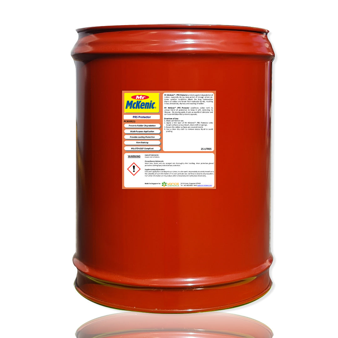 Mr McKenic® -PRS Protector conditions rubber with its unique blend of protectors to keep it soft, extending its lifespan. On moving parts, it acts as excellent lubricator and corrosion inhibitor that prevents squeaks.